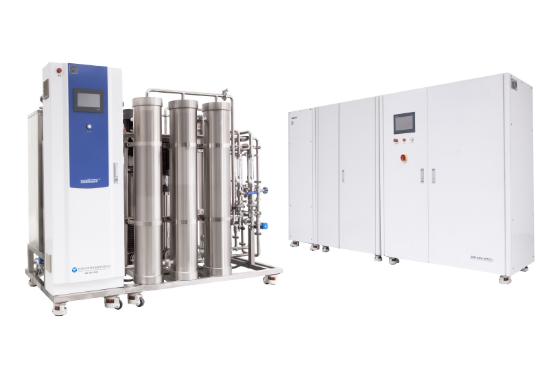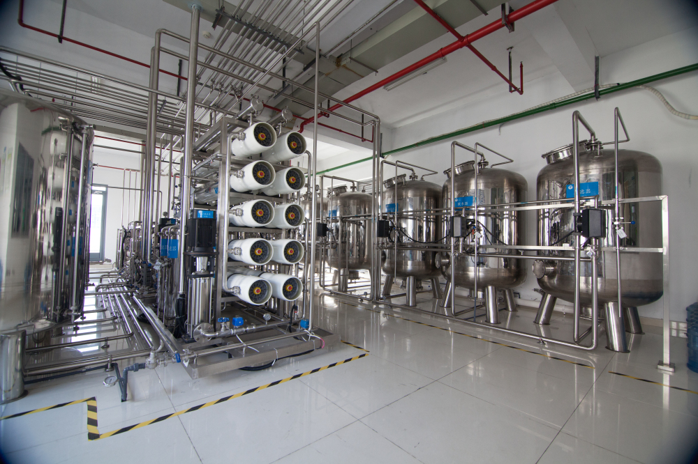 设备采用反渗透处理技术、紫外线杀菌及超滤处理技术组合工艺;深层过滤, 设备具有内置化学消毒系统,消毒参数可设定,实现自动化消毒功能;实时在线监测和显示消毒运行工作状态,消毒流程的确认,确保消毒安全; 设备采用纯水供水自动循环工艺,并通过高精度滤膜实时对循环水过滤,有效抑止细菌的滋生; 设备采用停机期间反渗透膜自动清洗、反渗透主机管路无死角设计等工艺,有效防止细菌滋生; 设备采用人机界面工程设计,使用进口品牌PLC与触摸屏,并设置用户密码管理,防止非专业人员误操作,确保设备的使用安全; 整套系统全自动运行,随开随用,无需专人看管,操作简单:具有预处理系统自动冲洗及再生功能;一键制水功能;自动开关机功能;纯水输送自动控制功能; 设备具备无水保护、压力保护、电源保护等多种安全自锁保护功能;