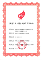 国家火炬计划项目证书